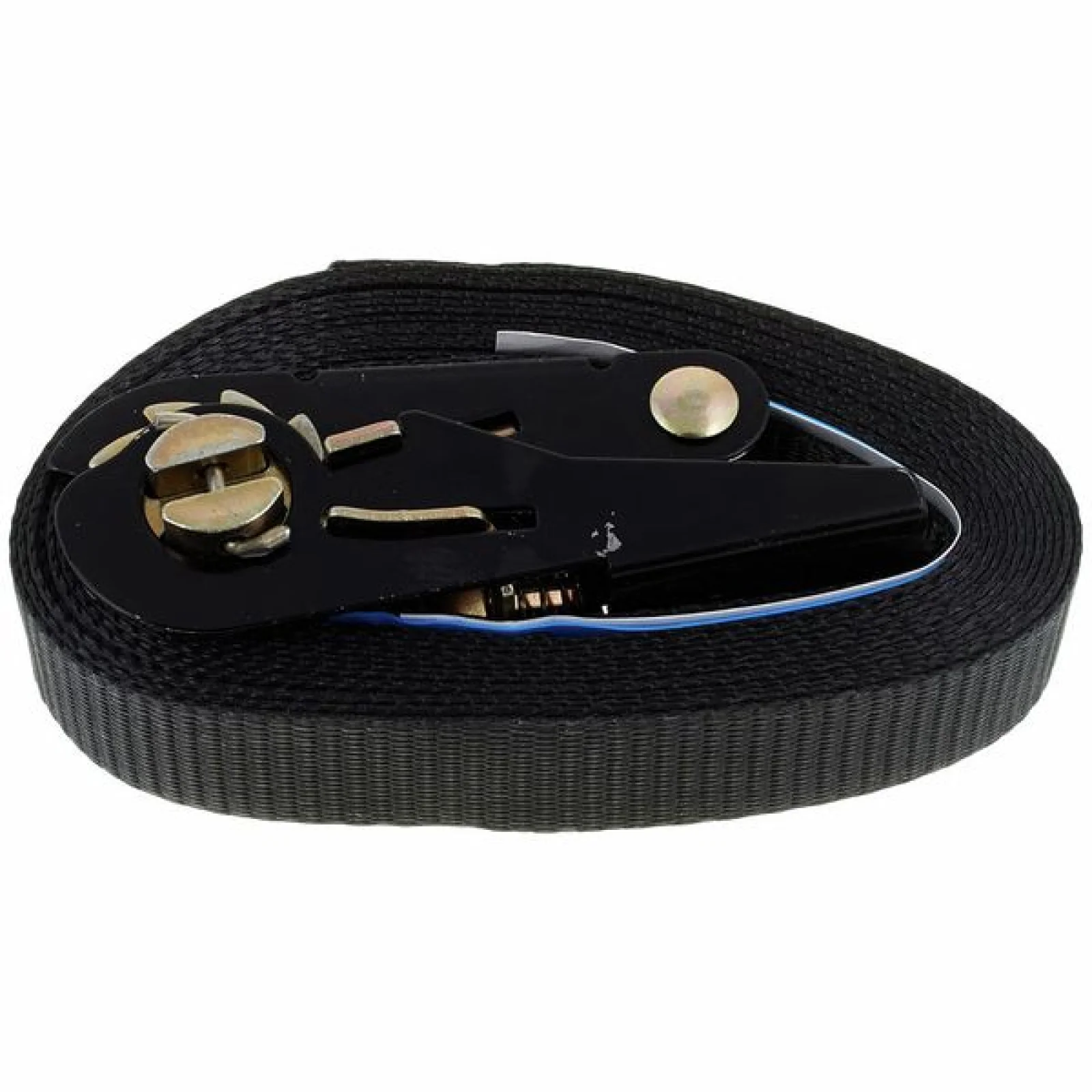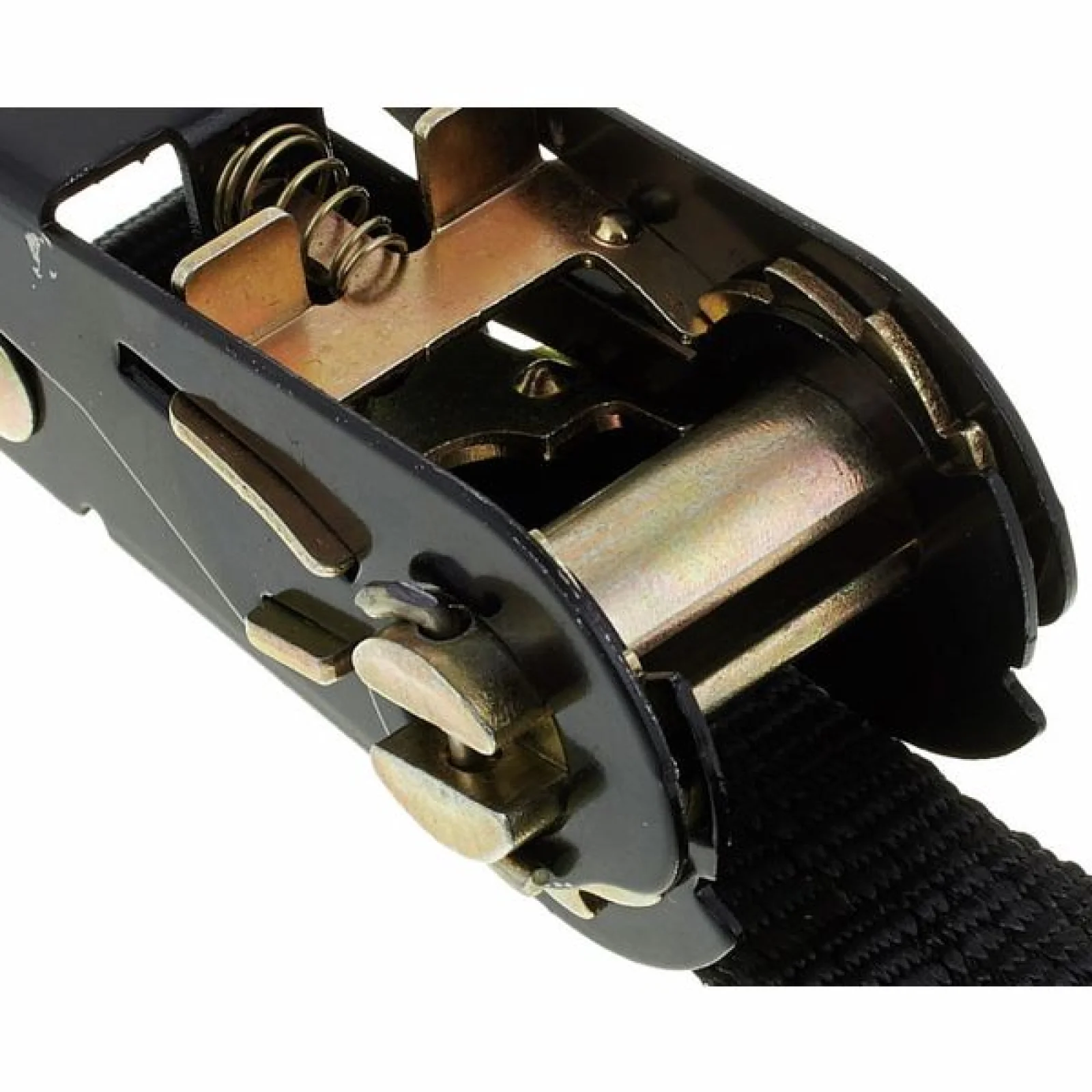 Ratchet strap 25 mm wide x 4m long In black With ratchet 1 - piece Pulling force LC: 400 daN Polyester (PES) VDI 2700, 2701, 2702, DIN EN 12195-2 Highly pre-stretched polyester-belt resulting in almost no remaining elongation Abrasion- and wear resistant Surface preserving EN 12195-2 u.ZH 1/413 Attention: Please, take note of the security advice on the label