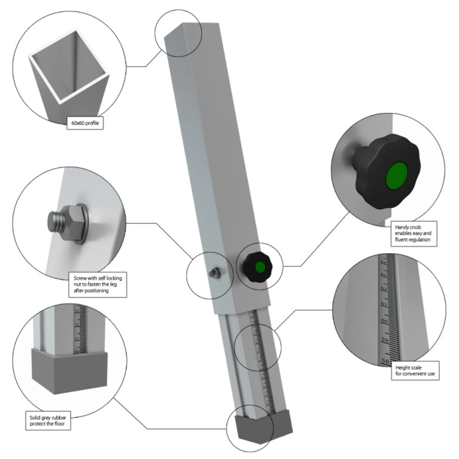 Professional Telescopic 80 cm-140cm Legs, 60x60 profile, Height scale, self locking screw, grey rubber.