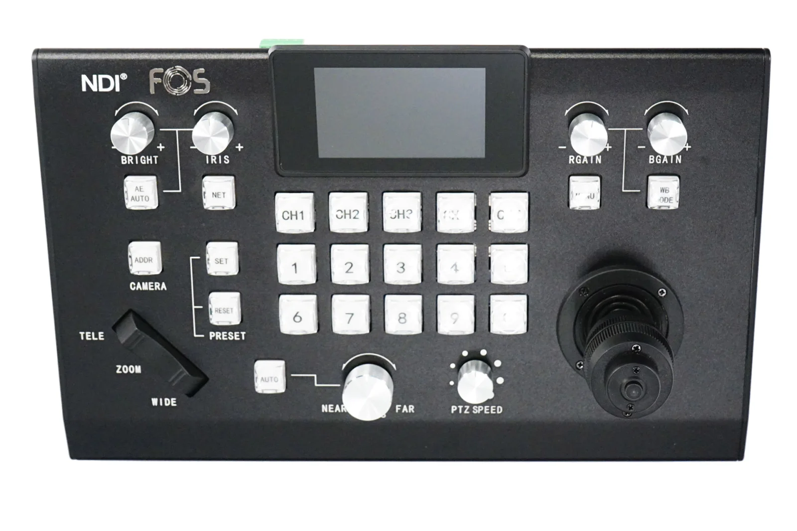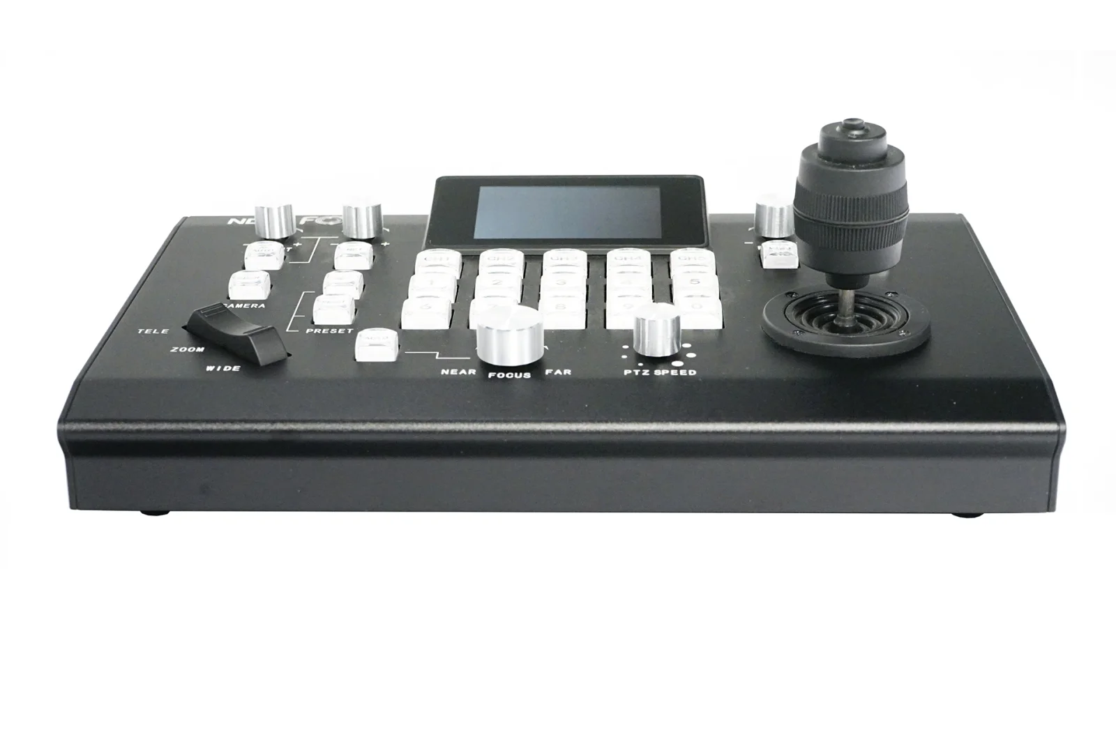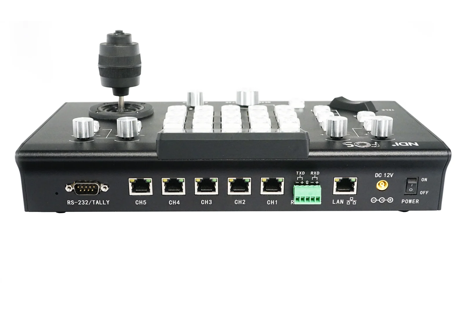 IP Joystick Controller for NDI PTZ cameras, lcd screen, 28 keys, Double color backlight, 10 level of brightness , up to 64 controllable cameras, protocol VISCA, PELCOP/D, Polycom, Cisco, Canon, Panasonic, high accuracy joystick.