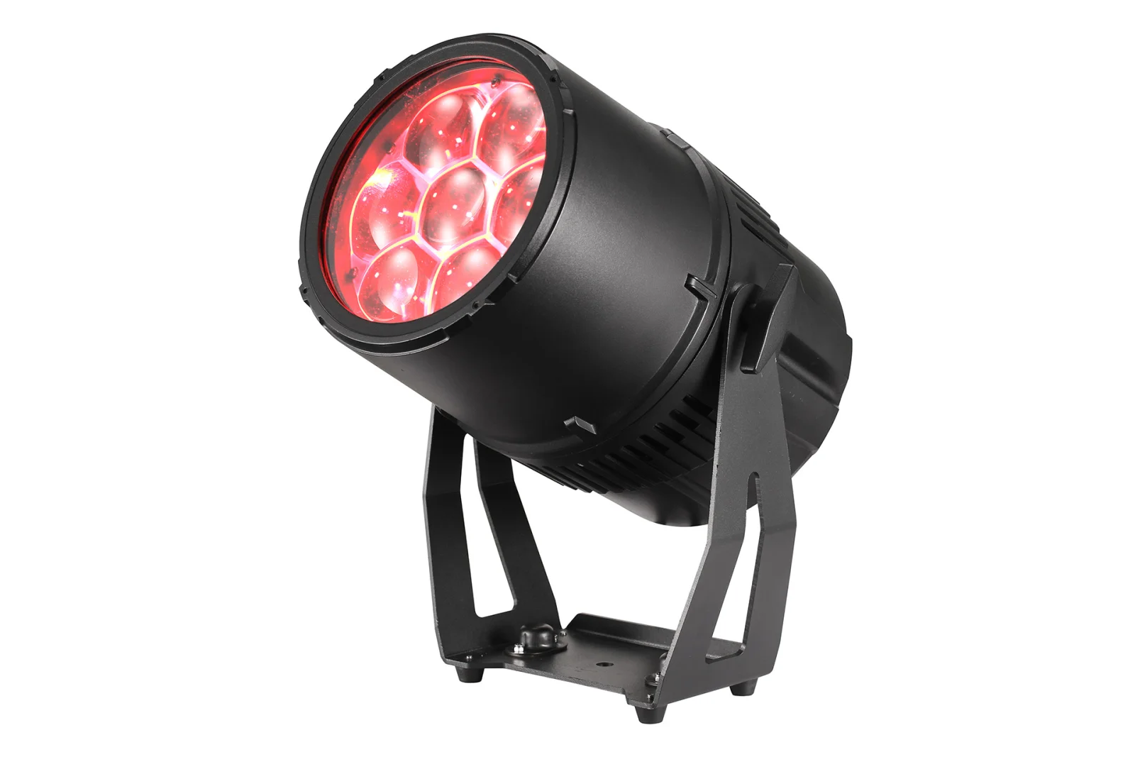 Profesionāls, laikapstākļiem izturīgs IP65 LED PAR, 7 x 40 W RGBW 4in1 LED avots, mainīga stara leņķis no 5 līdz 30 grādiem, super 360 grādu daudzstaru rotējošs virpuļefekts, virtuāls krāsu aplis, 5 aptumšošanas režīmi, lineāra temperatūras kontrole CTC, 6 un 13 DMX kanāli, RDM funkcionalitāte, 4 skārienjutīgas pogas ar OLED displeju, IP65 Seetronic barošana un DMX ieeja/izeja, lieta alumīnija korpuss, klusa dzesēšanas sistēma, stiprinājums un grīdas statīvs, 6 kg.