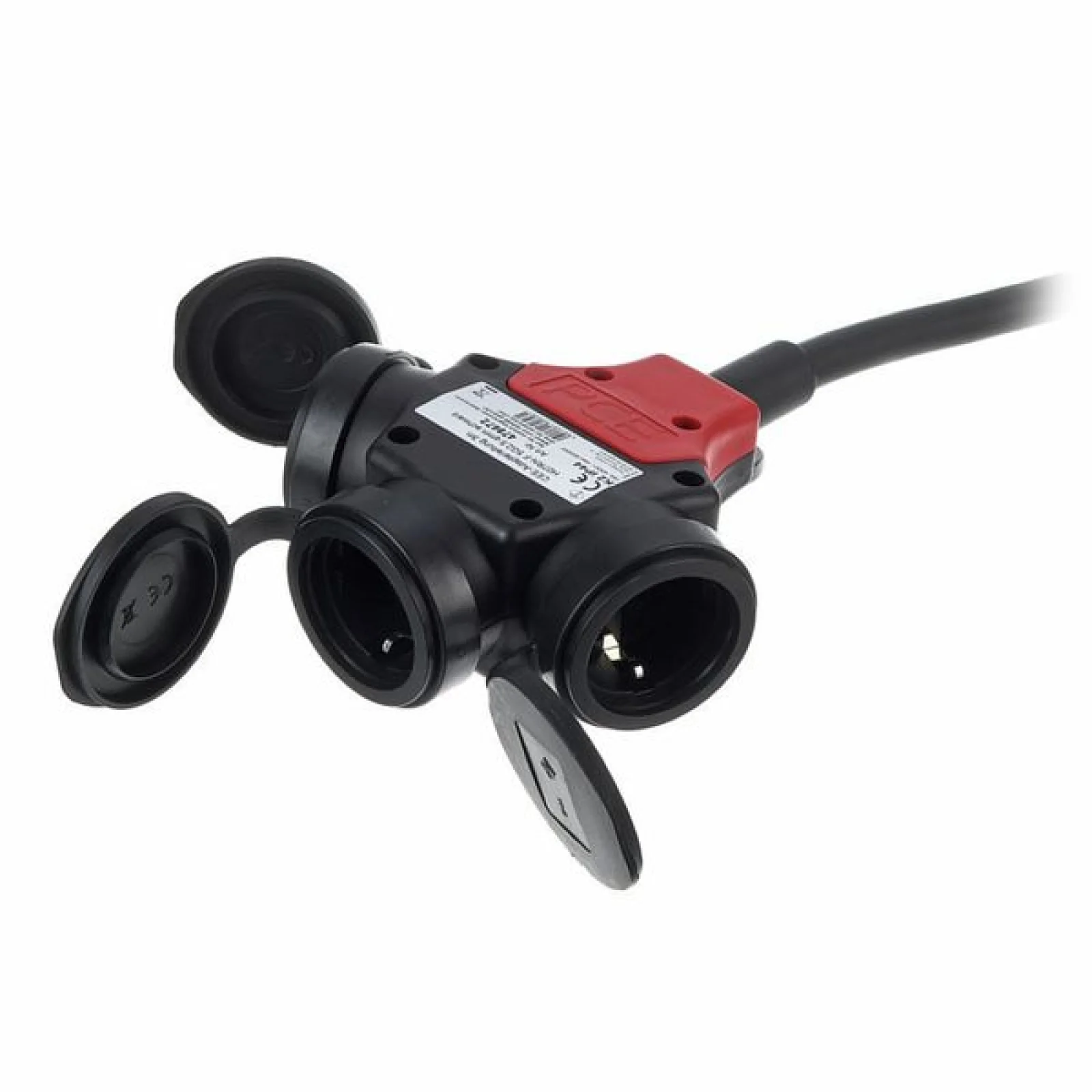 Power Distribution Extension Cord 16A PCE grip connector (5p.6h, 400 V) on 3-phase 3-way earthed coupling H07RN-F 5G2.5 mm² black Length: 3 m Includes hook-and-loop fastener Made in Germany