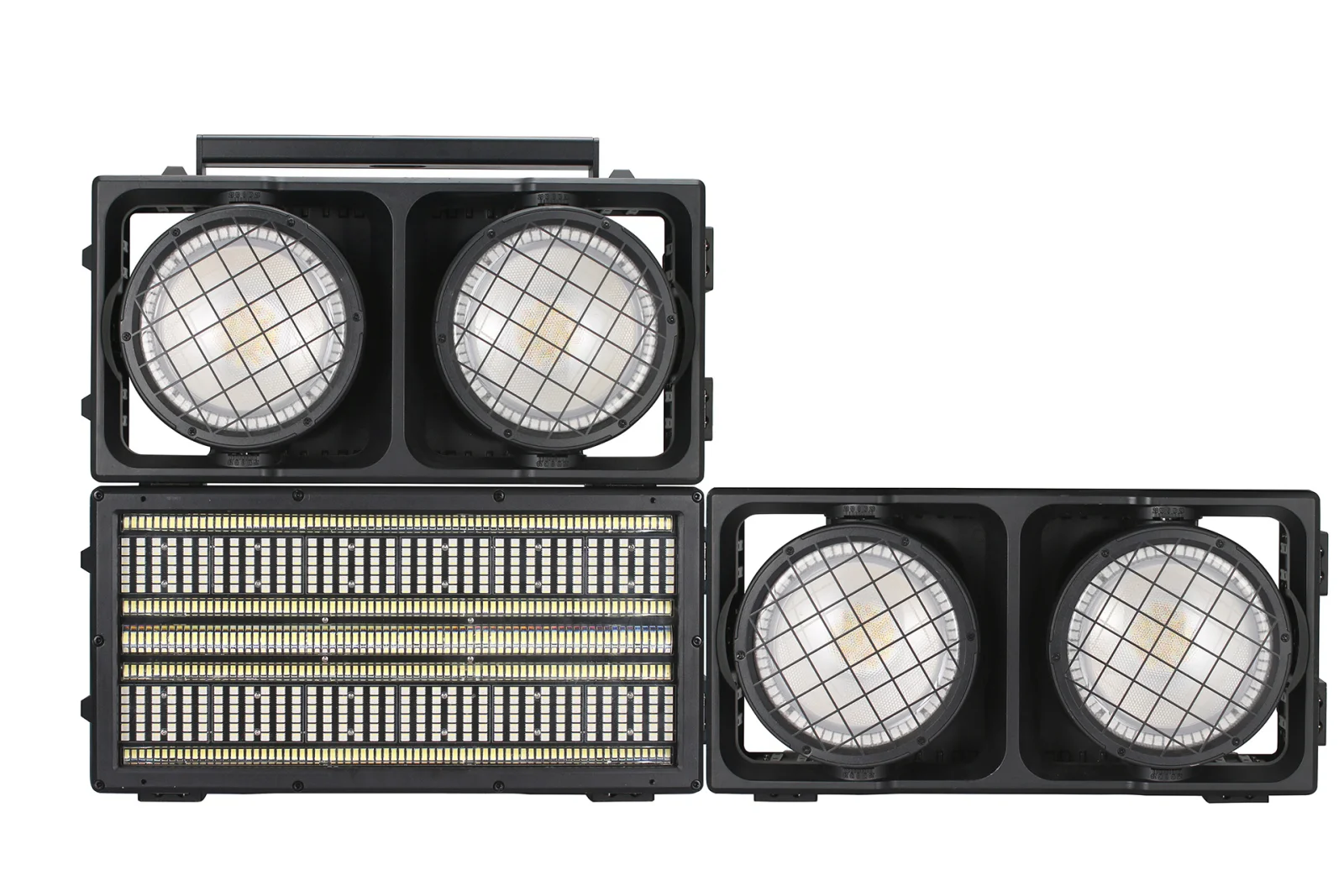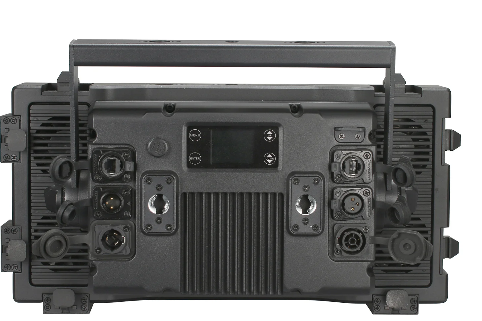 Professional IP65 Epic Strobe, 432 x 2W RGBW 4in1 leds in 2x 6 segments, 360 x 2W 6500K white leds in 5 x 12 segments, , DMX, ArtNet and RDM control, silent mode operation, selectable dimmer curves, horizontally and vertically stuck option, temperature-regulated cooling system, , LCD display, true powercon in/out, 11kg.