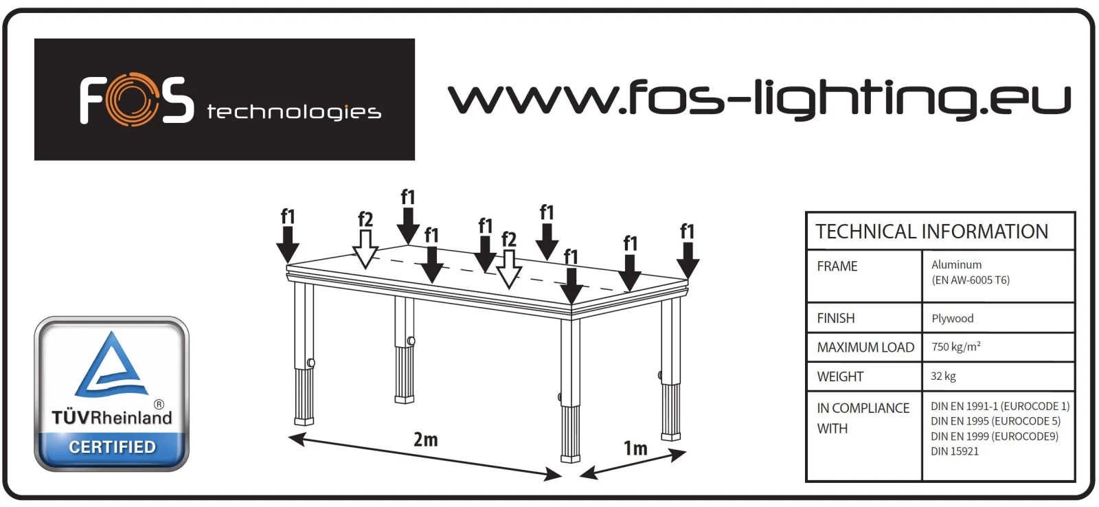 Professional Stages Decks 200cm x 100cm TUV approved, HEXA Finish, 750kg/m 16kg per sqm stage.