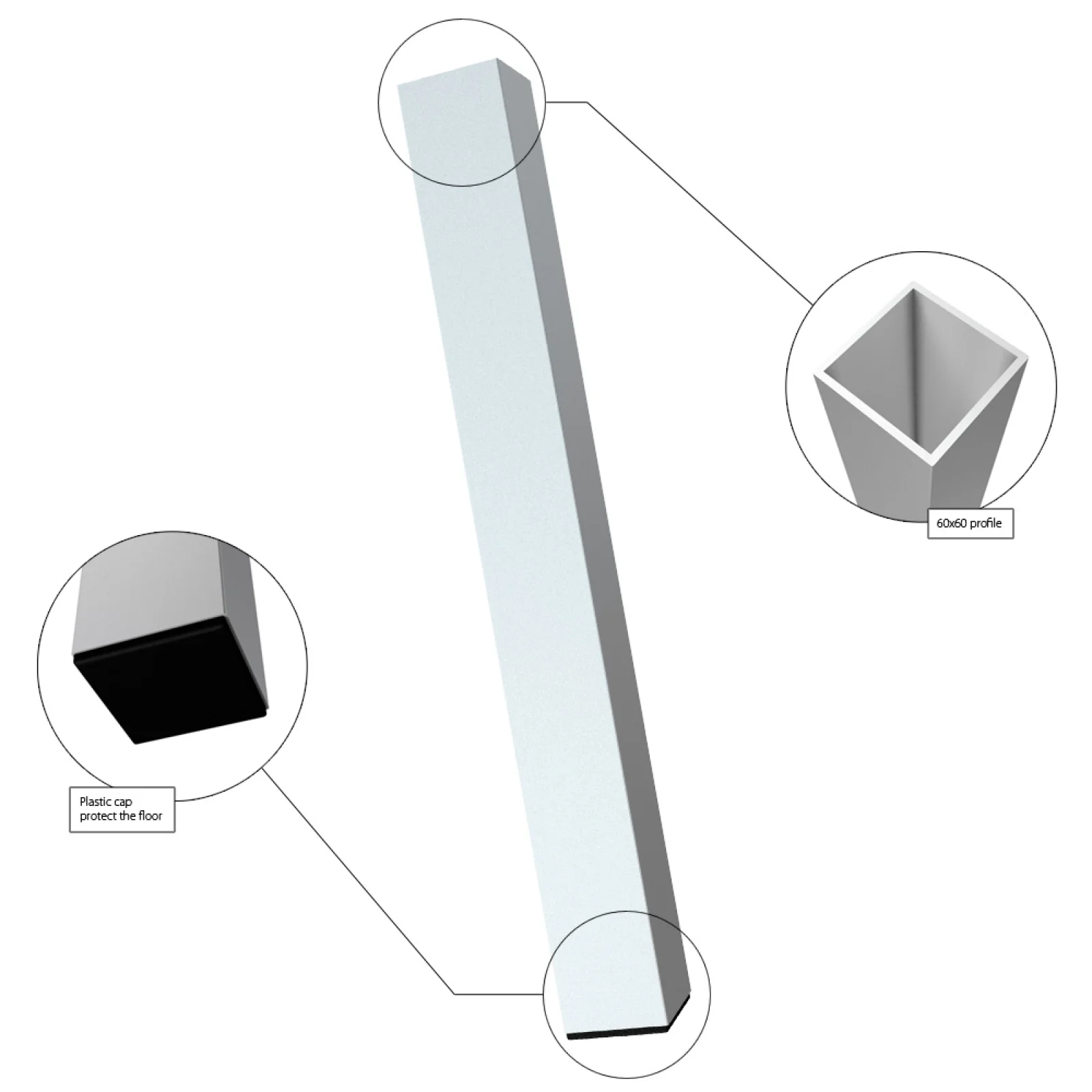Professional standard 20 cm height square legs, plastic cap protect floor, 60x60 profile.