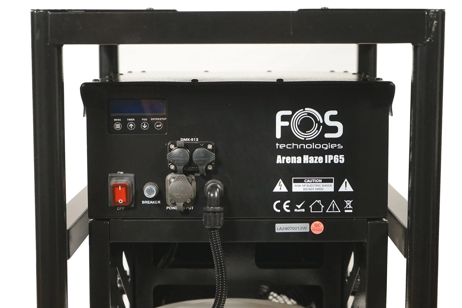 IP65 laikapstākļiem izturīgs profesionāls Arena Haze, vislabākā universālā miglas un dūmu iekārta profesionāliem teātra efektiem, 12 litru šķidruma tvertne, regulējams izejas leņķis IP65 ventilators, integrēts lidojuma koferī ar ritentiņiem tūrismam, uzsilšanas laiks 7 minūtes, izejas jauda: 55 000 kubikpēdas/min, maksimālais izejas attālums: 10 m, 2 kanālu DMX 512