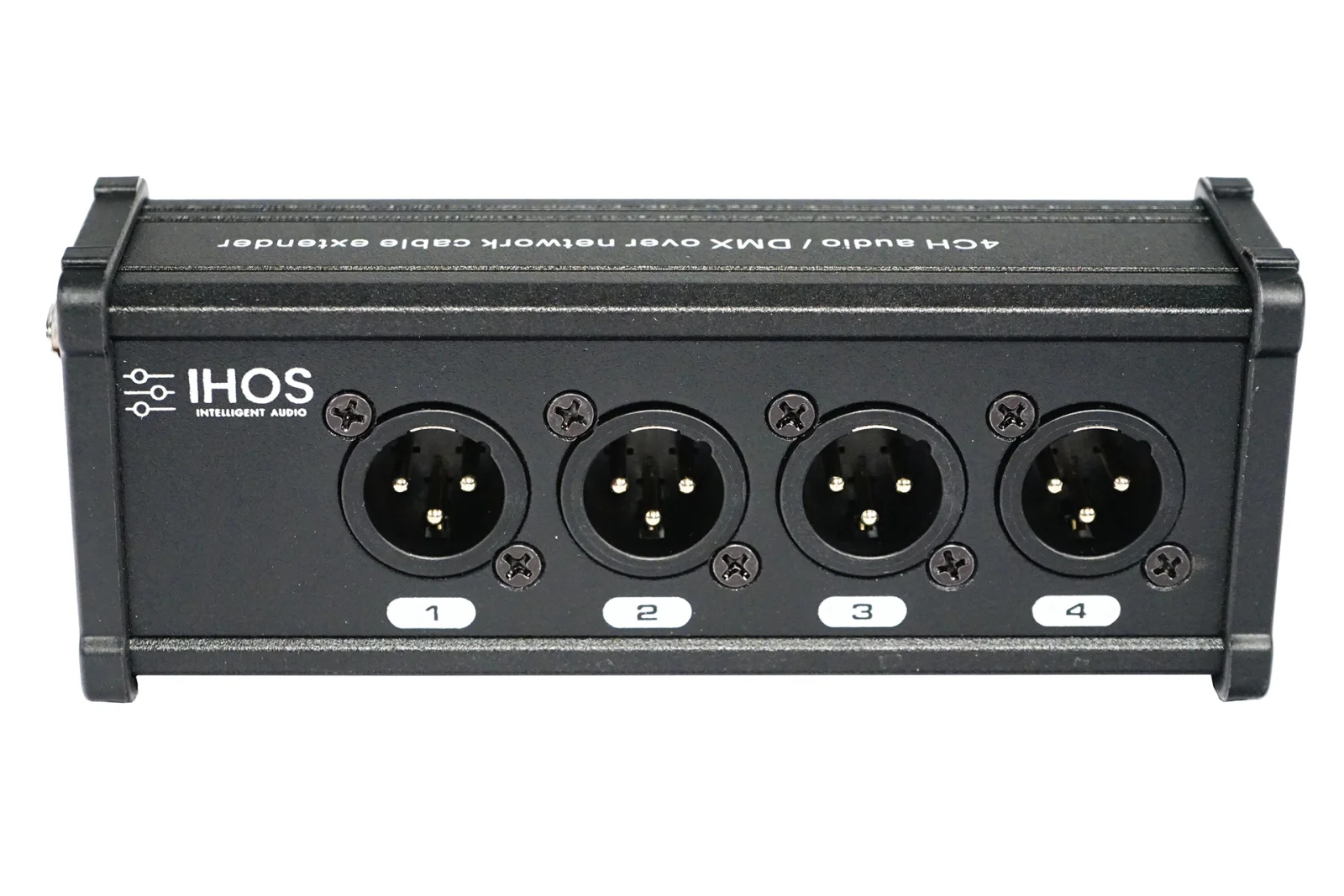 4CH over network cable extender, CAT5E cable can used to transmit audio signal, AES/EBU digital signal, DMX signal, female?RJ45, 4 x male XLR.